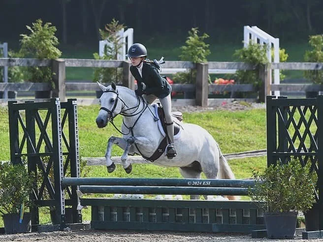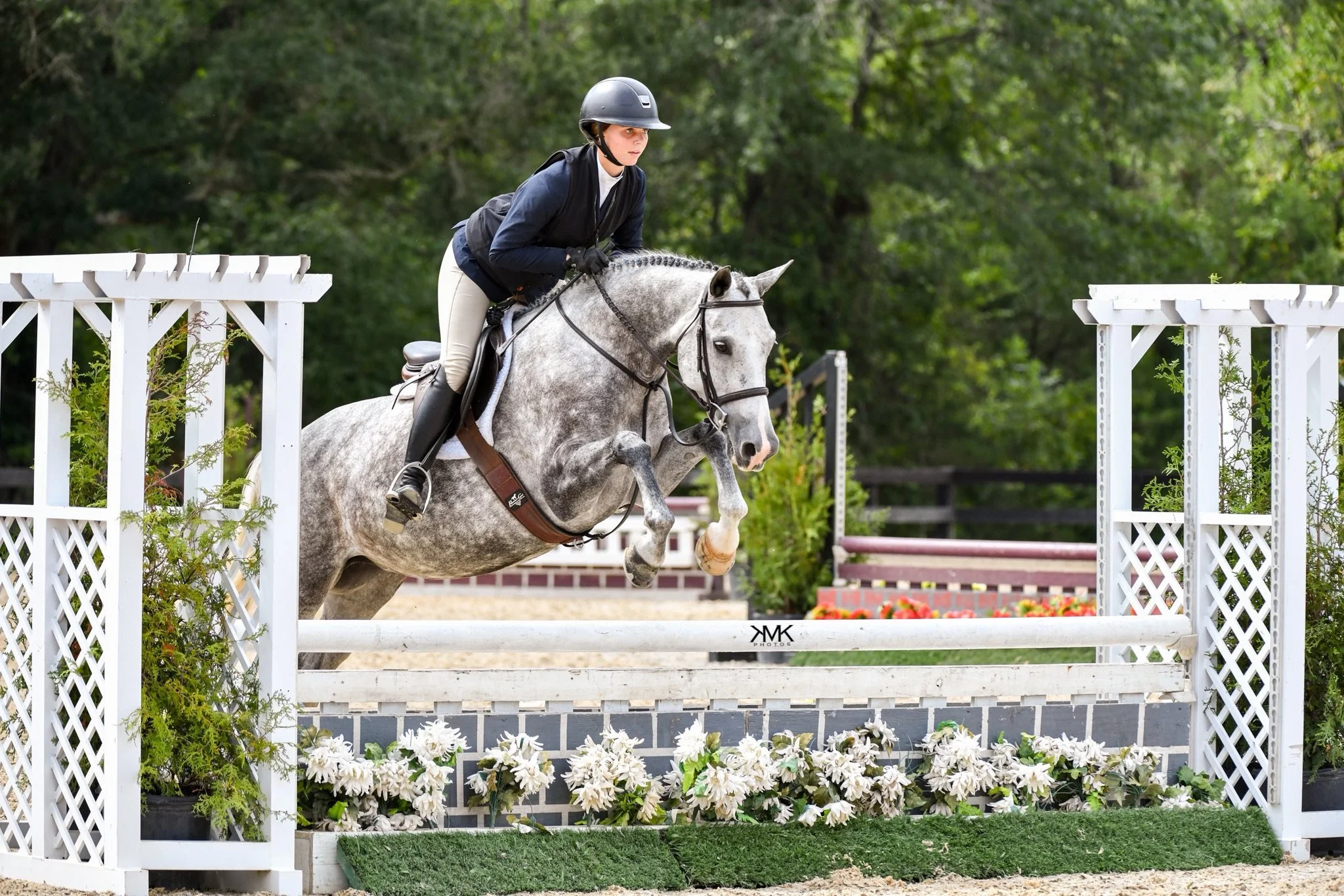 “Casey” is a 16h 2007 Holsteiner Gelding who excels in all 3 rings. Casey won the NEHC Adult 22-27 Medal and won the Challenge Cup at NEHC Junior Medal Finals in 2023, and won the RIHA Adult Medal and was 7th in the NEHC Adult 18-21 Medal in 2024. Before his successful transition to the Equitation and Hunter Rings, Casey was a seasoned Jumper.